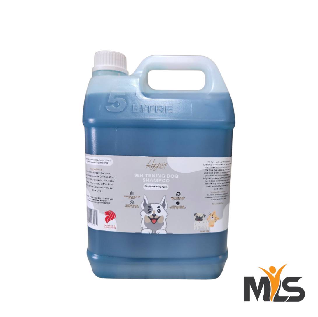 Whitening Dog Shampoo is specially formulated to be tear-free as it does not contain any SLES. The blue dye used is pet friendly and food grade. It color corrects yellowish fur to look whiter and brighter to restore the glow of the fur. It deep cleanses the fur to remove any build up in the dog coat, leaving fur refreshed and clean.