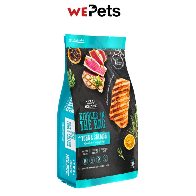 Kibbles in the bag - Tuna & Salmon:Introducing an all new revolutionary recipe formulated to provide your pet with a complete and balanced diet for life stages. Made with energy-rich ingredients including wild ocean fish that guarantees an optimal level of omega-3 and omega-6 to provide essential fatty acids to benefit your dogs inside and out. Every bag also contains wholesome cereals, FOS (fructooligosaccharides) and Yucca Schidigera to support digestion and prevent intestinal problems while also reducing inflammation with the presence of prostaglandins. Additionally, with the perfect balance of biotin and zinc, this diet is great for dogs of all lifestyles and tackles sensitive skin such as dandruff, itching, dermatitis etc.