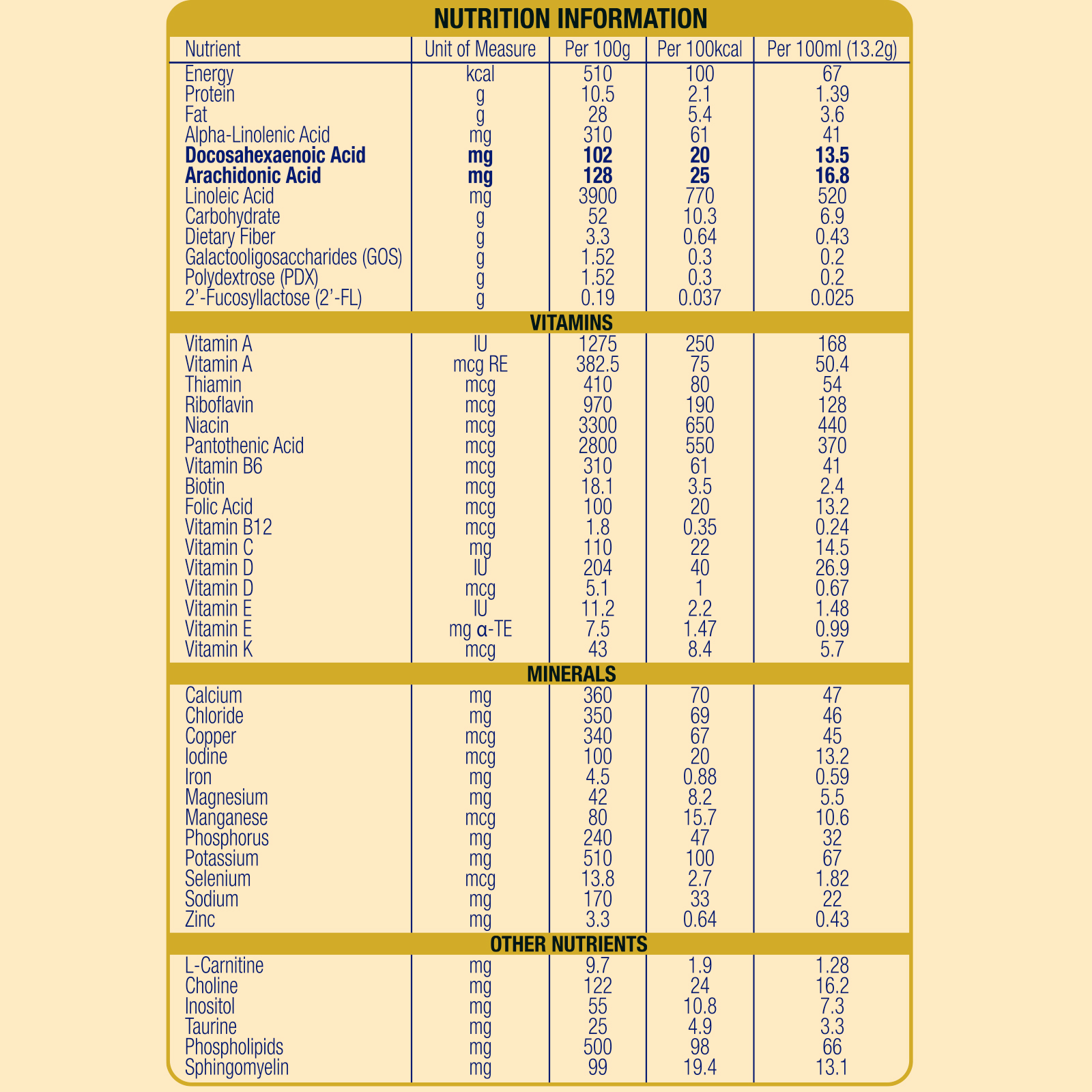 - ✓ 17mgΔ DHA & 34mgΔ ARA