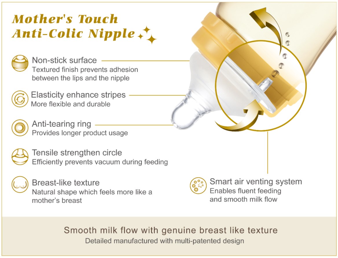 7.Equipped with cross hole mother's touch anti-colic nipple.