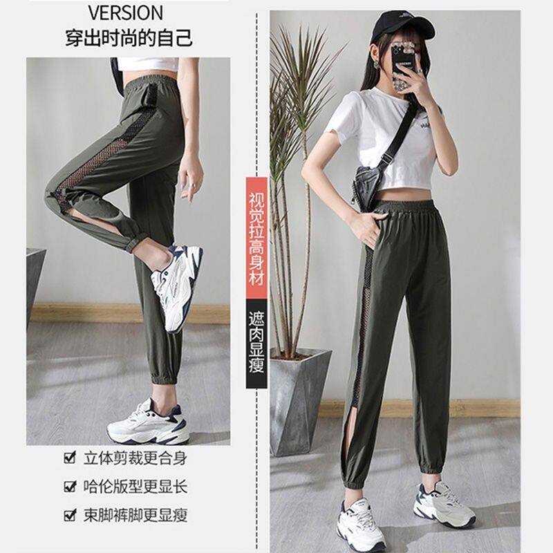 Annie-Sport Women's Sports Pants Quick-drying Fitness Leggings Female Summer Mesh Workout Exercise Running Jogging Gym Plus Size 09
