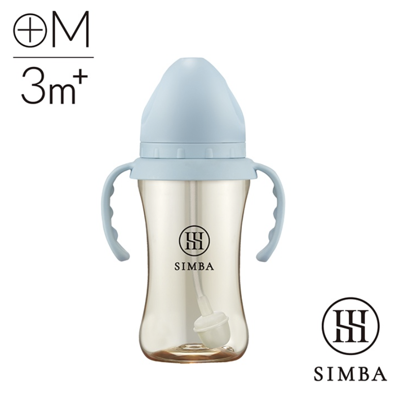 Simba allonge Milestone 200ml/7oz, 270ml/9oz, 360ml/12oz PPSU Wide Neck Anti-Colic Feeding Bottle with Straw and Handles Cross Hole S Teat(0m+)