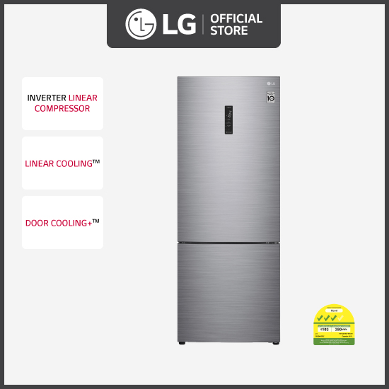 ● Inverter Linear Compressor4½ Star Rating With Inverter Linear CompressorWith less vibration, moving parts and - - - - - noise than a conventional LG compressor system, the 450L bottom mount fridge boasts first to market a class leading 4½ star energy rating. As the Inverter Linear Compressor is the heart of your refrigerator we back this with a 10 year* parts warranty on the compressor.