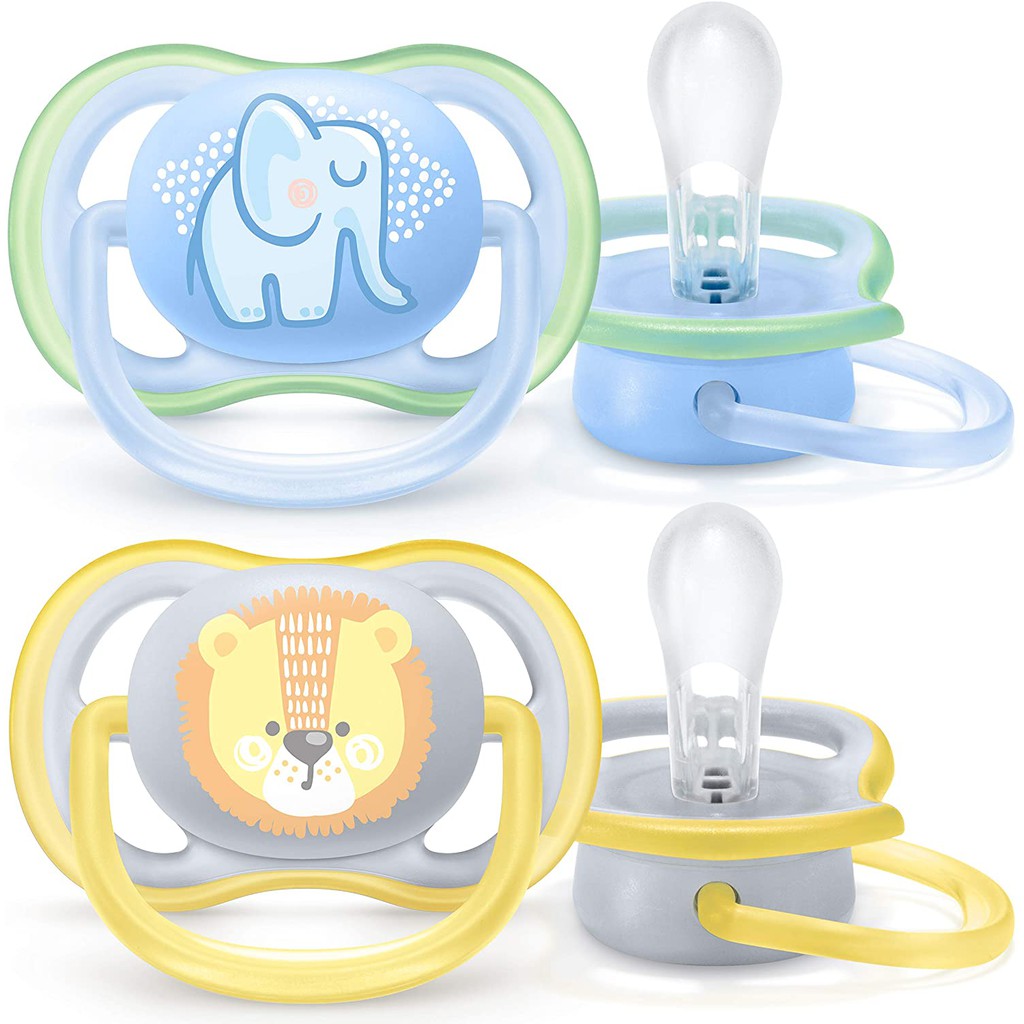Soothe your baby with a pacifier that lets its skin breathe. The Philips Avent ultra air has extra large holes to keep skin dry. Its lightweight shield is designed for maximum air flow. Available in various colors and designs