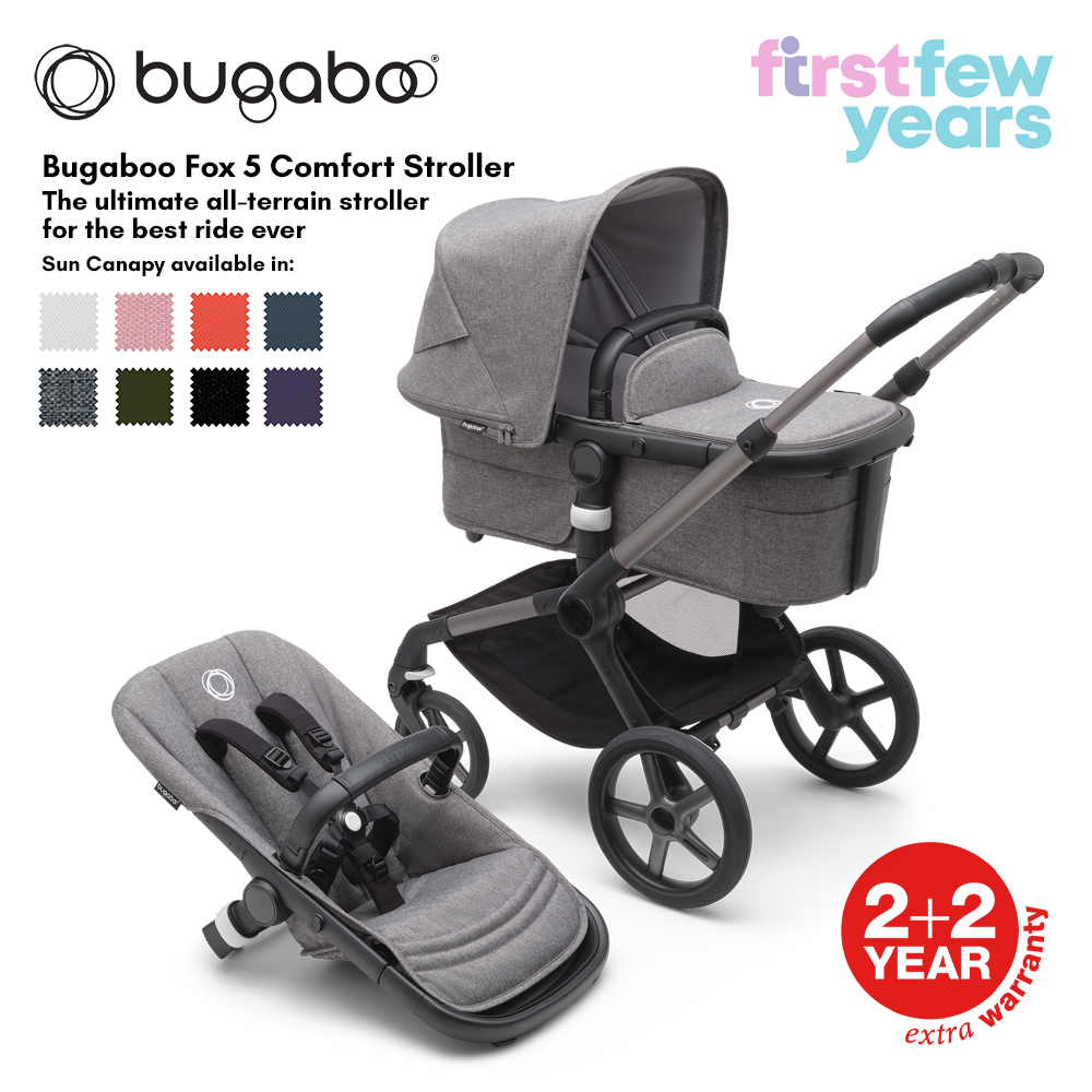 Our most comfortable and maneuverable all-terrain stroller. The Bugaboo Fox 5 offers the best ride on any terrain, with one-hand fold and superior comfort for your child.