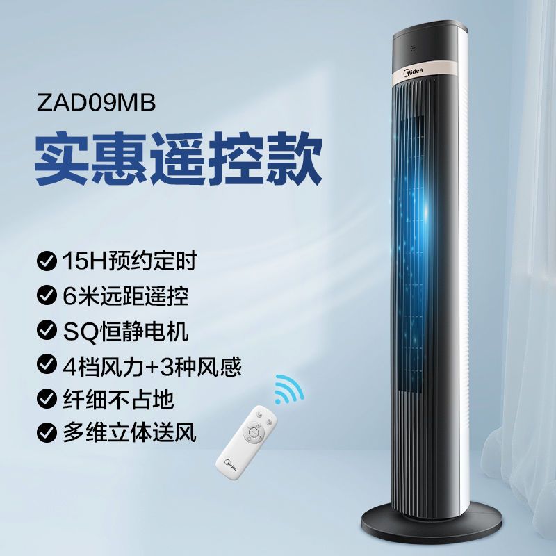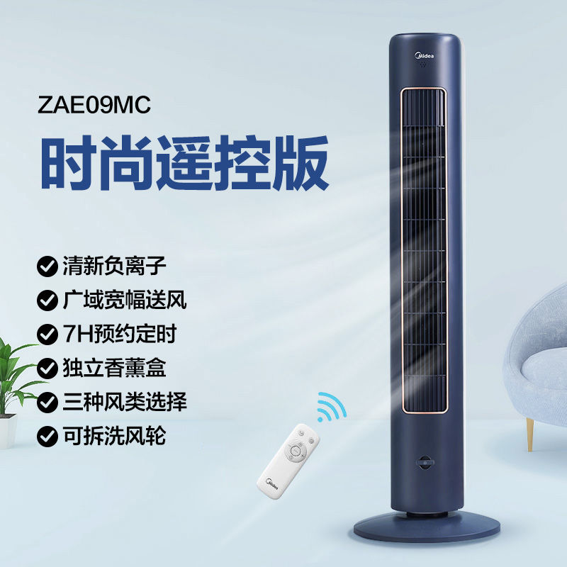 Midea Electric Fan Tower Fan Floor Fan Electric Fan Household Strong Wind and Blade-Free Mute Refrigeration ZAE09MC