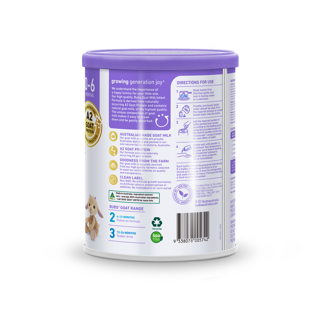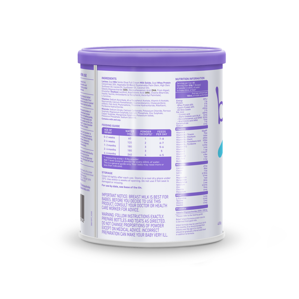 Bubs Organic Australian Goat Milk Infant Formula Stage 1 800G (0-6 months) [TinyWings.SG]