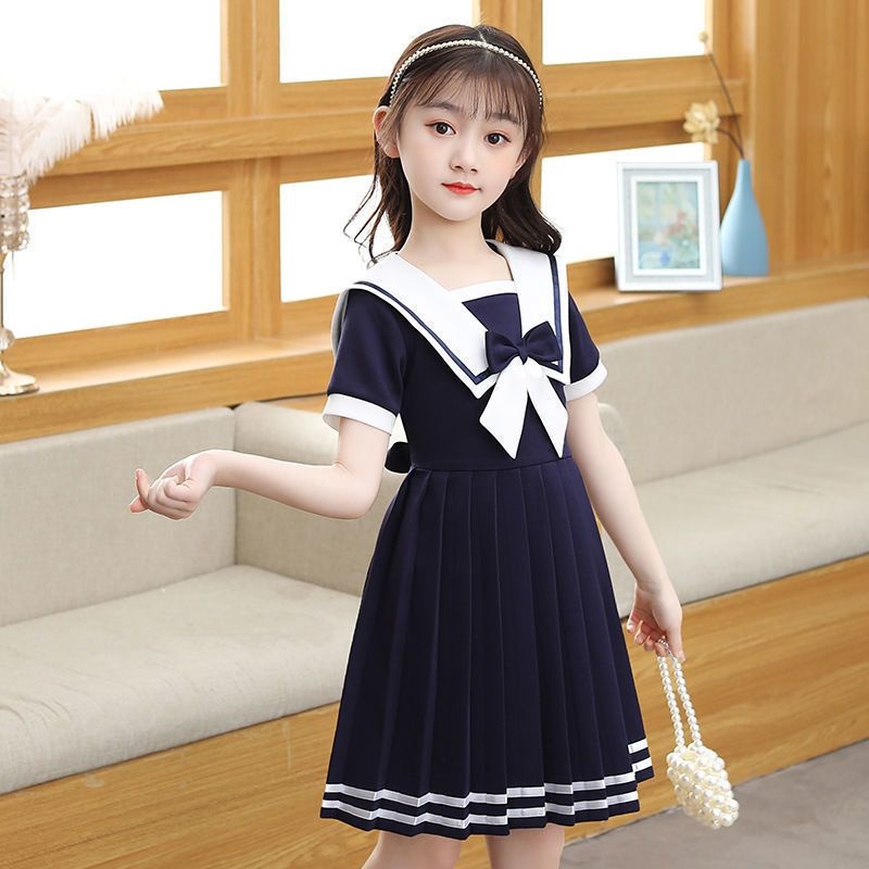 ♀☄ Angugu kids navy neck dress girls short sleeve dress summer Lolita princess dress JK college style little girl skirt 2 to 12 years old teen girl