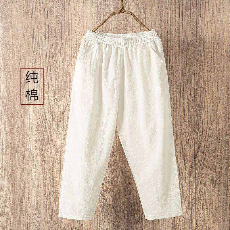 Thin 2024hc Pants Straight-leg Middle-Aged and Elderly White Waist Summer Women's Pants Harem Cotton Linen Loose Ladieswear Break Trousers with an Elasticated Waist