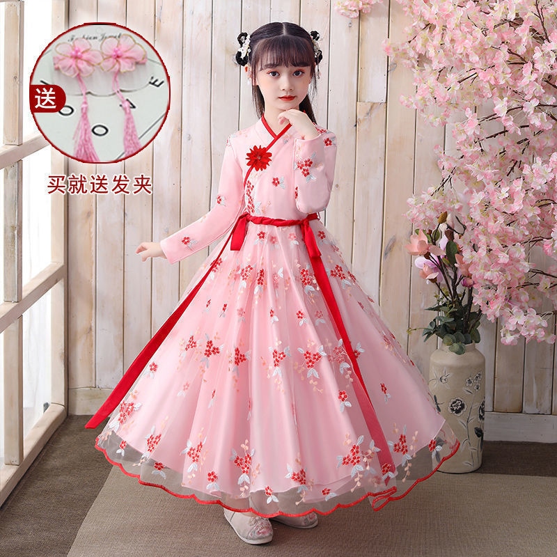 • Hanfu girls autumn costume super fairy elegant children's Chinese style long-sleeved dress