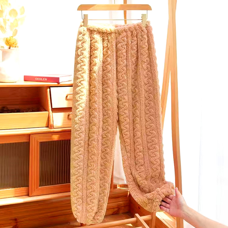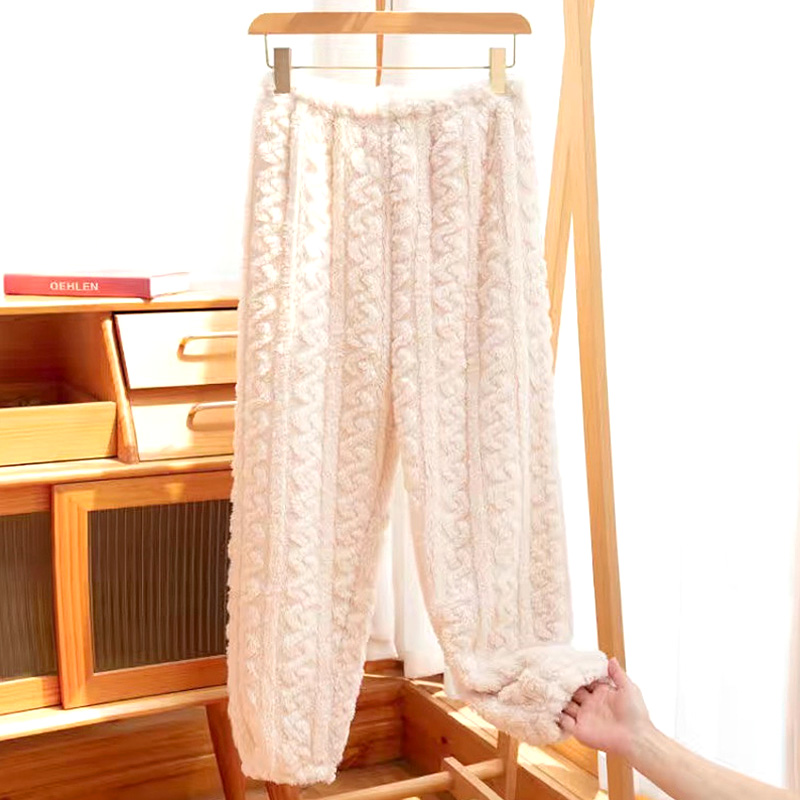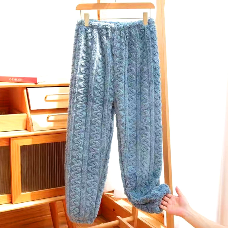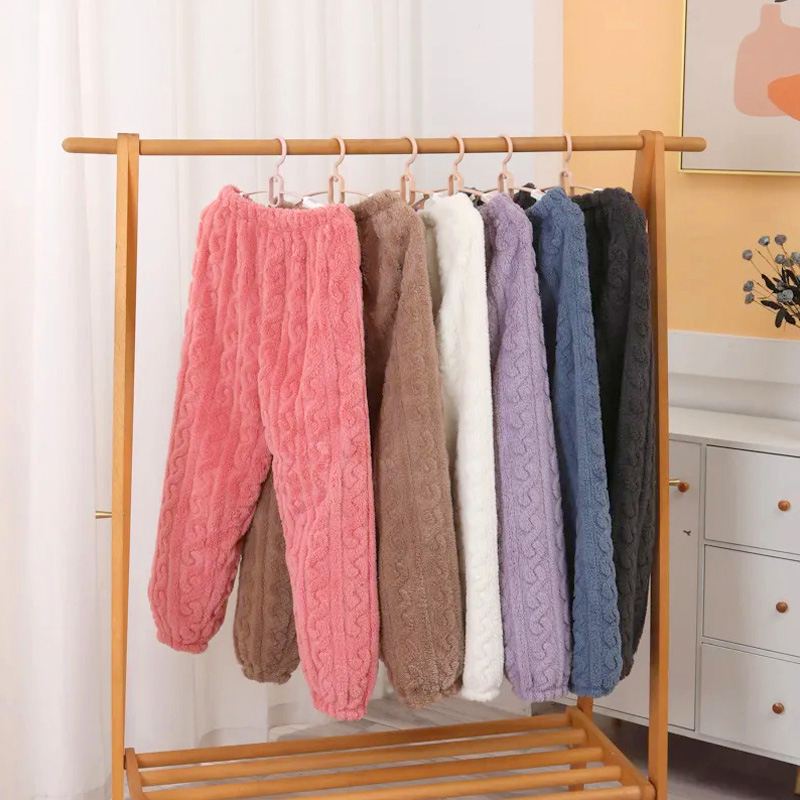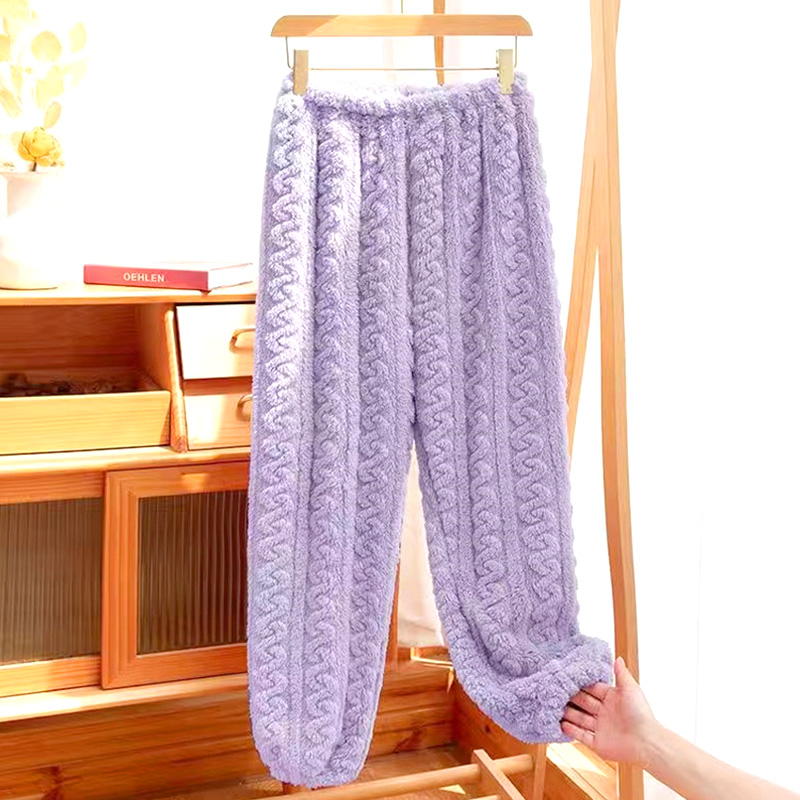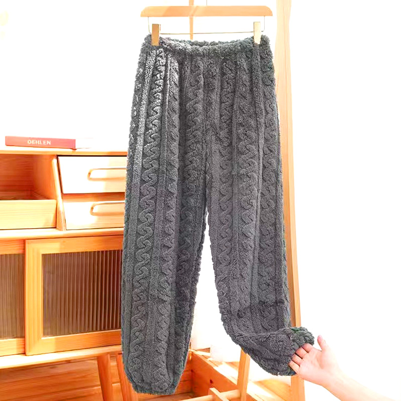 Oduw Women Loose Plush Pajama Sleep Pant Coral Velvet Thickened Home Pant Flannel Warm Autumn/Winter Solid Color Soft