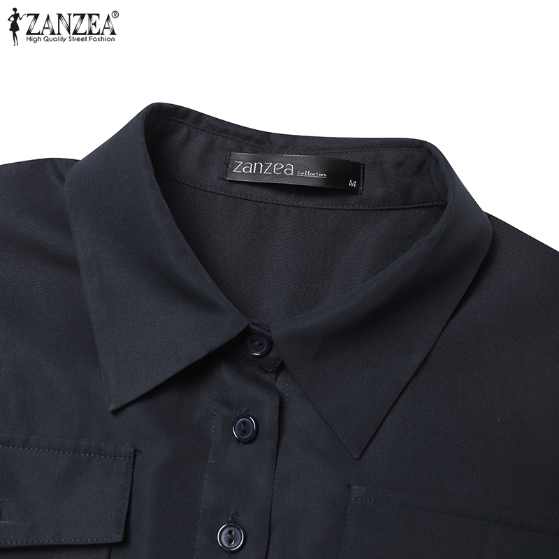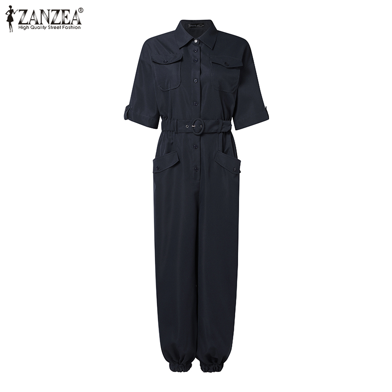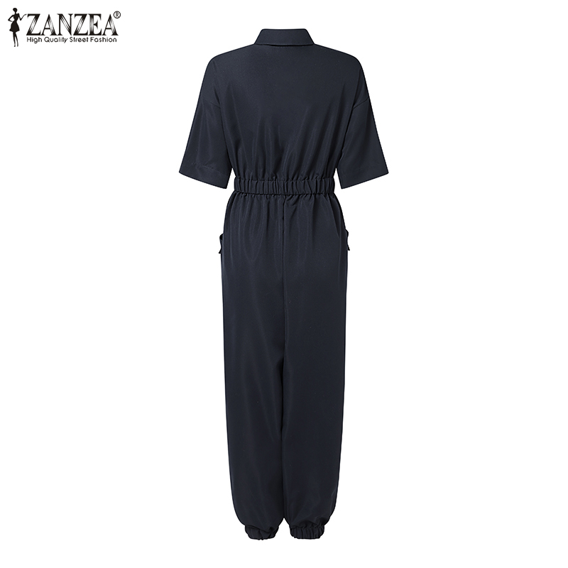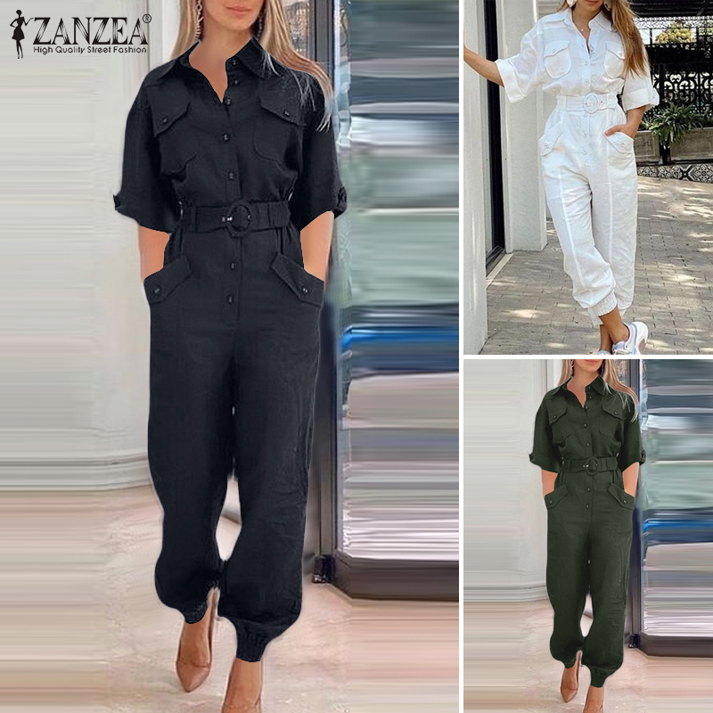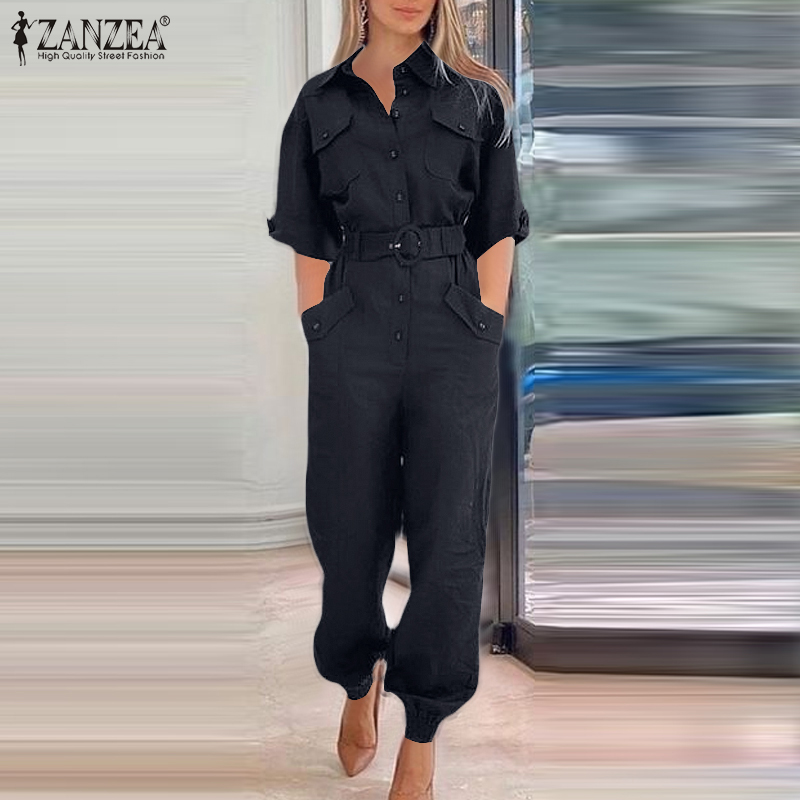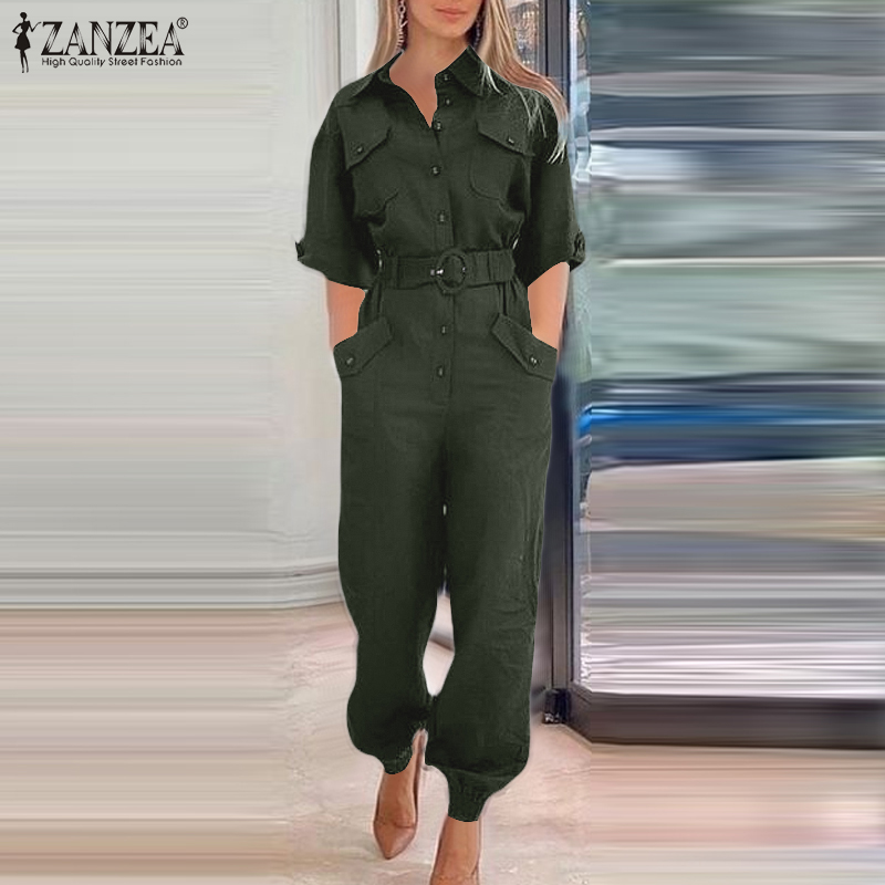 ZANZEA Women's Overalls New Fashion Turn-Down-Collar 3/4 Sleeve Playsuits Collect Waist Straight Jumpsuits #15