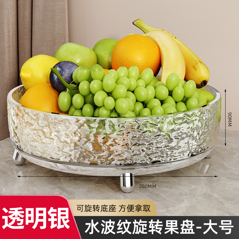 1)Large Water Wave : Large Water Wave Pattern Rotating Fruit Plate (1 set/Transparent Silver) 1