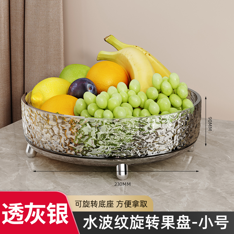 Medium water ripple : Medium water ripple pattern rotating fruit tray (1 set/translucent gray silver)