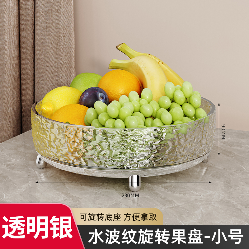 Medium Water Wave : Medium Water Wave Pattern Rotating Fruit Plate (1 set/Transparent Silver)