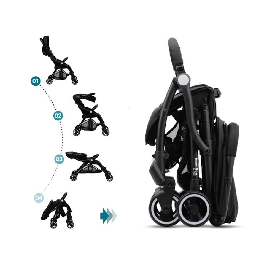 Hamilton S1 Plus Stroller is the ultimate compact stroller made up of top-quality lightweight aluminium frame, thanks to its spacious and comfortable seat, the stroller will carry your baby safely from birth to 4 years old, approx. 22kg. It is among the most popular strollers on the market, not only because of their quality but also thanks to the unique MagicFold mechanism. Fold and unfold in seconds with just one hand. Featuring a spacious seat, adjustable 3-point backrest, ventilation mesh, and an extendable anti-UV 50+ awning to protect against the bright, ultraviolet sun rays. The stroller can be folded compactly and can remain standing.