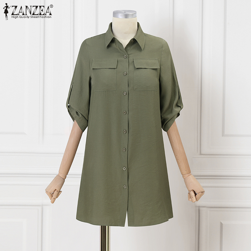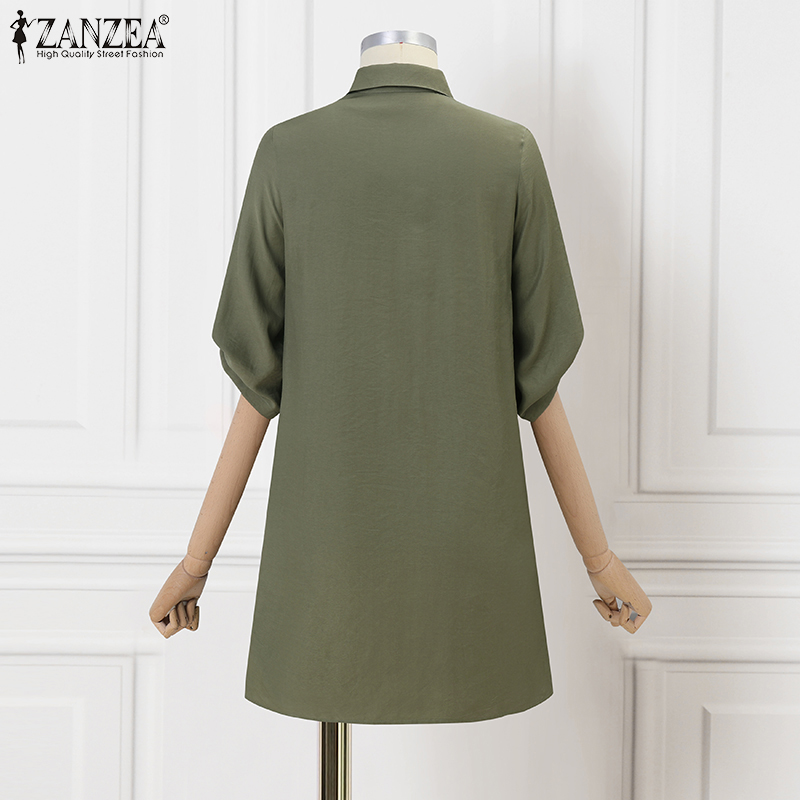 Esolo ZANZEA Women Fashion Lapel Collar Solid Color Shirt Dress Casual Buttons OL Work Mini Dresses #15