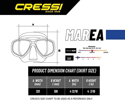 Designed for adult divers, the Marea mask gives an exceptionally wide field of view. Ideal for scuba diving and snorkeling. The Marea has separate lenses, a skirt edge that adapts to most faces and a small inner volume, perfect for scuba divers, even snorkelers. The lenses are made in tempered glass and treated with an anti-fog solution. The mask is equipped with Cressi's Micrometric Easy Adjust Buckles and has a wide silicone strap designed for even dispersion of pressure for increased fit and comfort. It features an Easy-to-Reach one-hand nose pocket for ear equalization, which can be utilized even when wearing thick gloves. The Marea is designed and manufactured in Italy by Cressi, an Italian brand pioneer in scuba diving, snorkeling , and swimming equipment since 1946.