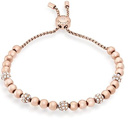 The Michael Kors jewelry collection is designed for timeless appeal. Crafted from hypoallergenic materials like stainless steel and brass with sparkling accents, rich in detail with enduring quality. Be charmingly chic in this rose gold-tone Michael Kors Jewelry beaded bracelet. Four pavé crystal beads add sparkle, and the slider clasp is finished with the MK logo. This beaded bracelet features gold-tone stainless steel and an adjustable slider closure. Circumference 7" Closure Type: Slider Finish: Polished #306,643 in Clothing, Shoes & Jewelry ( ) #760 in
