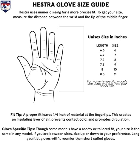 DESIGNED FOR: The Power Heater Gauntlet 5-Finger glove is designed for outdoor activities on chilly winter days, for both resort lift-served skiing and when you’re a little further away from the prepared slopes. Its heating components are easily adjustable to keep hands comfortably warm. ADJUSTABLE HEATING LEVELS: The heat is adjusted in three levels with an easily accessible control in the Hestra logo on the backhand. Replaceable and rechargeable batteries and a charger are included, as well as wrist straps to reduce the chances of dropping the glove on a ski lift. Heating times: low: 8-10 hours, medium: 4-5 hours, high: 2 hours. OUTER MATERIAL: Impregnated water-resistant goat leather and Hestra flextron softshell 4-way stretch is durable, supple stretch fabric made of polyamide/spandex offering wind and water resistance as well as ventilation properties. 92% Polyamide, 8% Elastane. INSULATION: The glove is insulated with G-Loft, a very thin 100% polyester fiber with exceptionally high insulating capacity, even in wet conditions. G-Loft is quick drying, breathable and very compressive. CZONE INSERT: Waterproof and breathable CZone insert inside the glove creates a warm, waterproof pleasant comfort zone for your hands. #932,496 in Clothing, Shoes & Jewelry ( ) #186 in