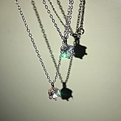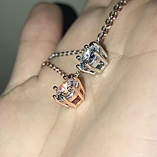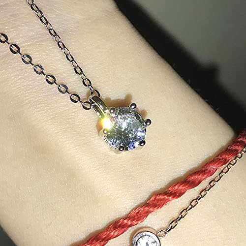 YCHZX Moissanite Pendant Necklace 18k Rose Gold Plated/Platinum Plated Moissanite Classic Six Prong 3 Carat Simulation Diamond Female Clavicle Chain Pendant Necklace (Platinum Plated)
