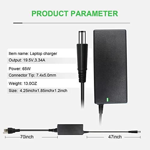 Input: 100-240V 50-60Hz Output:19.5V 3.34A 65W, Max Output Power:65W,Color: Black Connector tip: 7.4mm*5.0mm tip Compatible Part Numbers: PA-12 PA12 LA65NS2-01 LA65NE1-00 HA65NS-00 HA65NS5-00 DA65NM111-00 DA65NM130 FA65NE1-00 PA-2E PA-1650-02DD 310-2860 928G4 A00008 AA22850 PA-1400-12 492-BBKH 492-BBOM 492-BBOU 332-1831 492-BBKH Y1H45 M1P9J DPW2X 310-2860 310-3149 310-4408 310-7251 310-7696 928G4 A00008 AA22850 MY4Y4 N6M8J YT886 Compatible models:For Dell Chromebook 11 3120 3180; for Inspiron 1000 3000 5000 7000 15R series; for Latitude 5480 5580 7280 7480 5414 7414 E5440 E5450 E5540 E5550 E7240 E7470 E7270 E6520 7404 3580 3480 (Please see below detail compatible models) 100% New from Manufacturer, Overcharger and Discharger Circuit Protection, CE-/FCC-/RoHS-Certified for safety Custom service: 24 x 7 email support ,12 months warranty and 30 days money back guarantee.