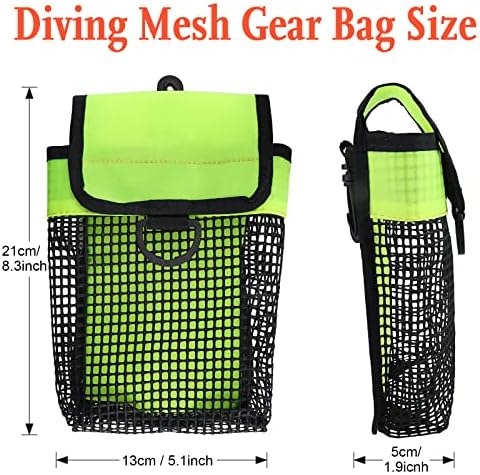 ❤️【MULTIFUNCTION BAG】: Our collection bag is ideal for storing diving SMB, dive reel, divinggloves,also can be used to carry flashlight, compact camera, drift hooks or other underwater equipment accessories. ❤️【PRACTICAL ACCESSORIES】: With these useful mesh bags, you can carry many diving gears easily, and convenient to receive all the small things you carry around every time. ❤️【HIGH QUALITY】: The bag is made of durable 210D coated nylon + PVC mesh cloth materials, designed with mesh holes, easy drain, loop tape fastener closure, easy to use. ❤️【SECURE YOUR GEAR】: The mesh gear pouch has a strong swivel snap and loop closure made for underwater use. Can be attached to a weight belt, BCD harness, or any D-ring. No need to worry about your items falling out. ❤️【EASY TO CARRY】: This mesh bag can be easily folded as a small pack, and is really portable to carry! the storage bag will offer you a lightweight experience on the go, perfect for carrying diving reel/ safety marker tube gears when you go underwater.