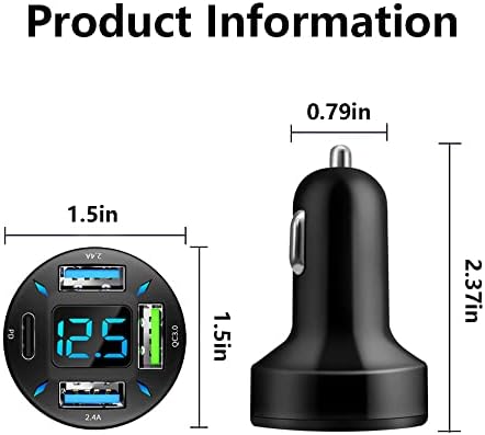 ⚡QC3.0/PD fast car charger:The 4-port car charger comes with a PD 2.4A USB C port,tailored for fast charging for phones, with 20W power, far exceeding the charging efficiency of the original charger. And 1* QC 3.0,2*USB A ports, compatible with most mainstream cell phone fast charging, can charge 4 devices simultaneously charging,gets to 90% charge in <45 minutes,to achieve real stability and speed. ⚡Voltage detection:Car cigarette lighter adapter with LED digital display voltage meter, you can monitor and display the voltage of the car battery in real time,to master the health of the car's electrical system,let you take timely measures to avoid possible breakdowns during driving.Help you drive safely and discharge safety hazards. ⚡Smart chip protection:Our compact charger has a built-in upgraded smart master core chip that contains a power management chip and a fast charging protocol chip.It can provide protection against over voltage,over current,over temperature and over power short circuit.It can also intelligently identify electronic devices and adjust the current output to ensure your safe charging while driving. ⚡LED light and anti-fall:When the car charger is charging,which will have LED light display,You don't need to struggle to find the charging port in the dark any more and the soft light increases the warm atmosphere in the car.On both sides of the charger we have strengthened the anti-slip shrapnel, elastic and solid,even if driving on uneven mountain reads,there will be no power failure. ⚡Wide compatibility: Effectively compatible with various cell phones,tablets,car recorders and other USB devices for charging,widely used in mainstream models with 12-24V voltage input,compatible with various models of cigarette lighters,including family cars,business SUVs,off-road sports cars,etc.