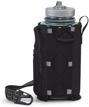 Nylon Made in the USA or Imported FREE YOUR HANDS. Free up your hands by carrying your water bottle in this functional and fashionable water bottle holder. Note: Water Bottle not included. ADJUSTABLE FIT. An adjustable strap provides a comfortable carrying experience. The water bottle compartment features an adjustable bungee strap to accommodate a wide range of water bottle sizes. SECURE STORAGE. The zippered internal pocket with a key hook and stretch phone pocket helps keep your keys and electronics safe for a day of exploration. RECYCLED FABRIC. A water-repellent, recycled design keeps your valuables safe and dry while allowing you to proudly be environmentally conscious. TECH SPECS. Dimensions: 7.1" x 3.7" (18 cm x 9.5 cm). Volume: 1 liter. Fabric: Solid: 210D recycled nylon ripstop with non-PFC durable water-repellent (non-PFC DWR) finish; This item is not intended for use by children 12 and under.