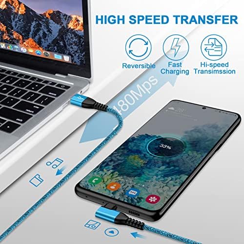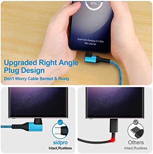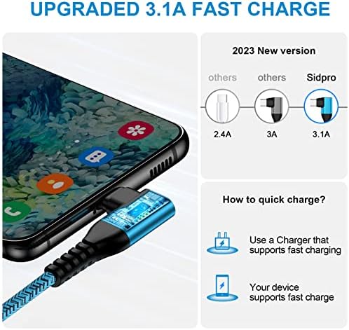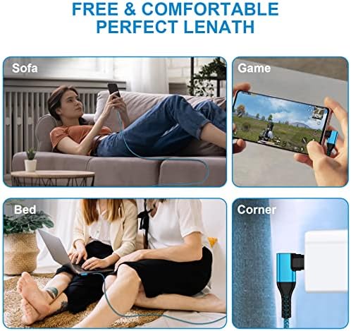 【3.1A Fast Charging & Sync Speed】: Samsung Galaxy S24 Android Charger Cable Fast Charging supports high-speed charging up to 3.1A (40% faster) compared with other cables. And data transfer speed up to 480Mb/s. 【Broad Compatibility】: Type C Cable Fast Charging for Samsung Galaxy A15 5G A25 A14 5G A54 A53 A13 A12 A04s A03s A02s A23 A24 A42 A32 A10E A11 A20 A21 A50 A51 A52 A70 A71 A72 A32 S24 S24+ S24 Ultra S23 S23+ S23 Ultra S22 S22+ S22 Ultra S21 S21+ S21 FE S21 Ultra S20 S20+ S20 FE S20 Ultra S10e S9 S8, Note 20 Ultra/10/9/8, Google Pixel 8/8 Pro, 7a/7 Pro/7, 6a/6 Pro/6, 5a/5, 4a/4XL/4, 3a XL/3a/3XL/3, Moto G Pure/Power/Stylus/Fast/Play, One 5G Ace, G100, and other usb type c device. 【Advanced Right Angle Design】: Compared to conventional charging cables, this samsung galaxy a14 5g cable features an ergonomic 90° Right Angle "L" design that may effectively prevent typical wear, straining cable and connection issues and increase the life of the charging cable. Samsung galaxy s24 ultra charger cable user-friendly design more convenient and comfortable for playing games, watching videos, and reading e-books when you charging. 【Enhanced Cable Durability】: Reinforced 90 degree Samsung S24 Charger USB C Cable has electronic safety certifications that comply with appropriate standards. The premium nylon braided design enhances the durability of the cable. which makes the usb android cable more sturdier than normal cables but also tangle-free. With 40,000+ times bend test, the flexible and durable double-braided nylon type c fast charger cord longer service life and will never rupture. 【What You Get 】: 2-Pack 6ft Nylon Braided Type C Fast Charging Cable(Blue&Purple). 24-hour friendly customer service, 30-day free refund or replacement, 12-month worry-free warranty. If you have any question, please feel free to contact us by email.