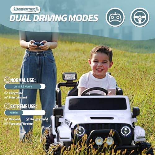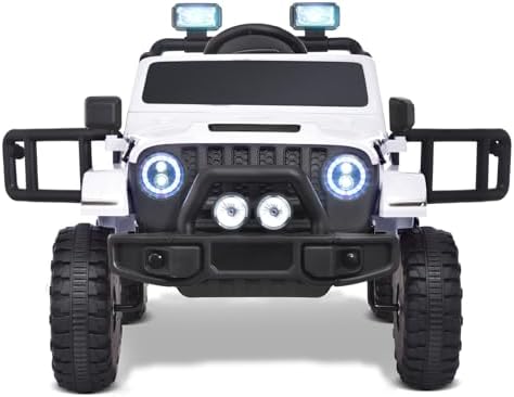 Joywhale 12V Kids Ride on Truck Battery Powered Motorized Car Electric Vehicle for Kids, with Remote Control, 4-Wheel Suspension, LED Lights, Music & FM, Seat Belt, Portable Handle, White