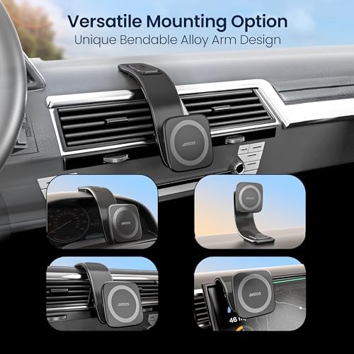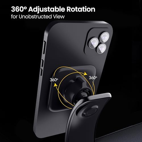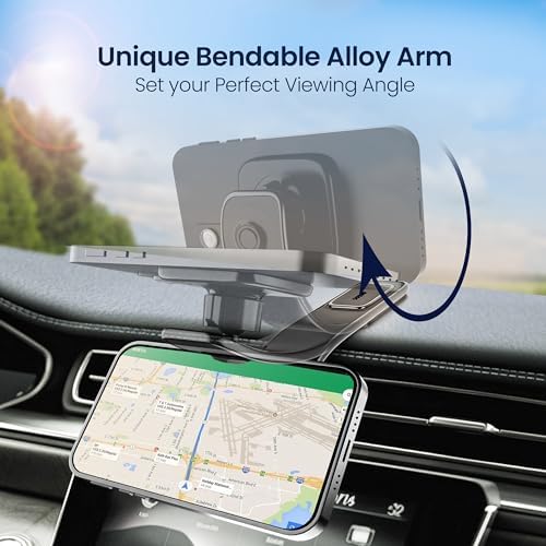 Magsafe Magnetic Car Phone Mount for iPhone 15/14/13/12 Pro/Plus/Max and Android Phones with MagSafe Ring Adaptor, 360° Rotating Head & Bendable Alloy Arm for a Simplicity Modern Design