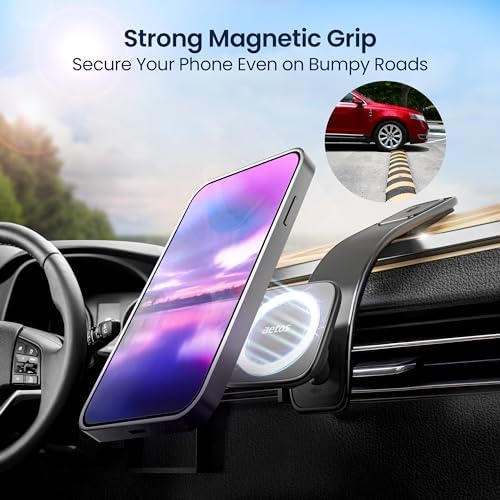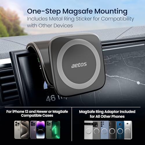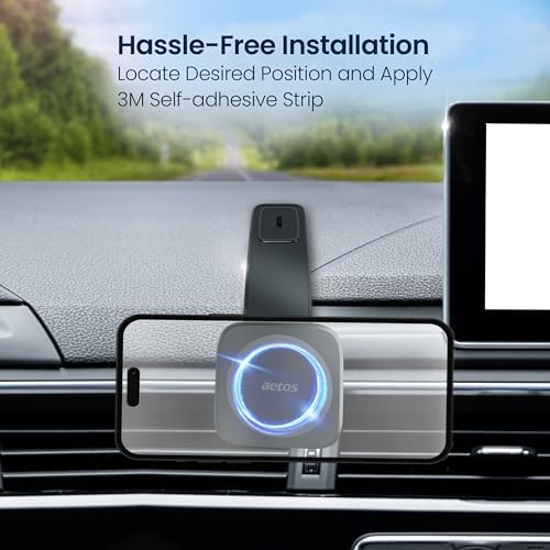 Strong Magnetic Grip: The aetos Car Dash Mount features 16 powerful magnet that securely holds even the largest phones, such as the iPhone 15 Pro Max, ensuring your device stays in place even on bumpy rides. Flexible and Adjustable: Made from bendable memory titanium alloy, this car mount offers flexibility and adjustability, allowing you to position your phone at the perfect angle for your needs. Versatile Compatibility: Designed to be compatible with iPhone 15, 14, 13, 12 Pro Plus Max Mini, and most Android phones using MagSafe compatible adaptor. This car mount provides a secure grip for a wide range of devices. Easy Installation: The car mount comes with a reliable adhesive strip that ensures easy and secure installation on any clean and smooth surface. Sleek and Minimalist Design: With its simple and modern design, the aetos Car Mount blends seamlessly with any car interior, adding a touch of elegance to your vehicle. Durable and High-quality Construction: Built with quality materials, this car mount promises durability and longevity, offering a reliable solution for hands-free phone usage while driving. Extra Accessories Included: The car mount comes with an extra adhesive strip and a MagSafe compatible ring adaptor, providing additional convenience and flexibility for users. Great Value for Money: Given its premium features and high-quality construction, the aetos Car Mount offers excellent value for money, making it a worthwhile investment for every car owner.