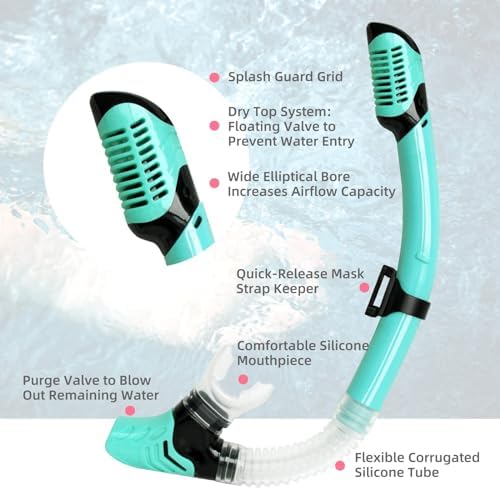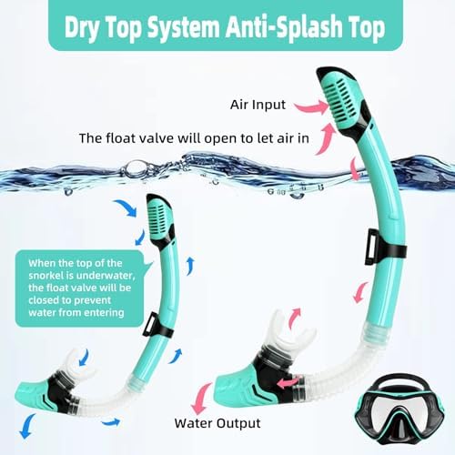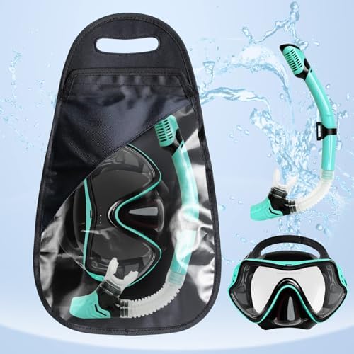 Swimming Goggles Snorkel Diving Mask for Adult Men Women Youth, No Leak Comfy Mouthpiece Anti-Fog 180° Panoramic View Scuba Diving Swim Pool Equipment Snorkel Kit(Black & Green Set)